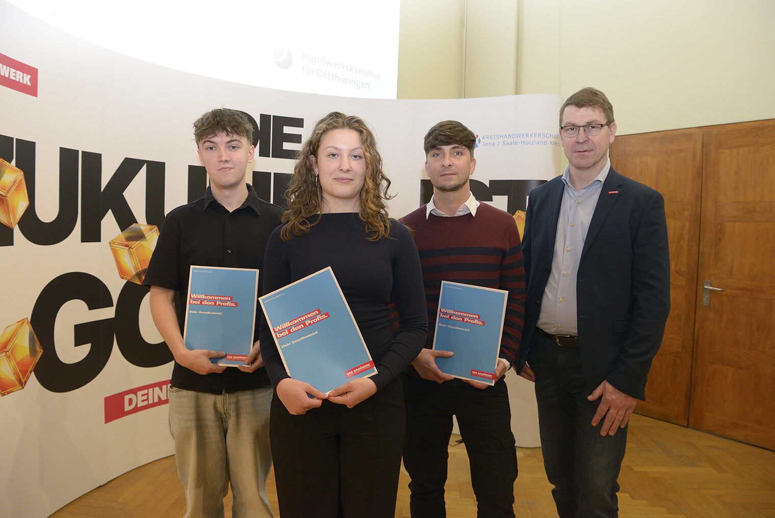 Im würdigen Ambiente des Jenaer historischen Rathauses und im Beisein von etwa 140 Gästen aus Politik, Wirtschaft und Handwerk sowie Familienangehörigen wurden zur traditionellen Gesellenfreisprechung der Kreishandwerkerschaft Jena/Saale-Holzland-Kreis 36 Auszubildende aus den Gewerken Anlagenmechaniker für Sanitär‑, Heizungs‑ und Klimatechnik, Elektroniker für Energie- und Gebäudetechnik sowie Maler und Lackierer und Tischler freigesprochen.