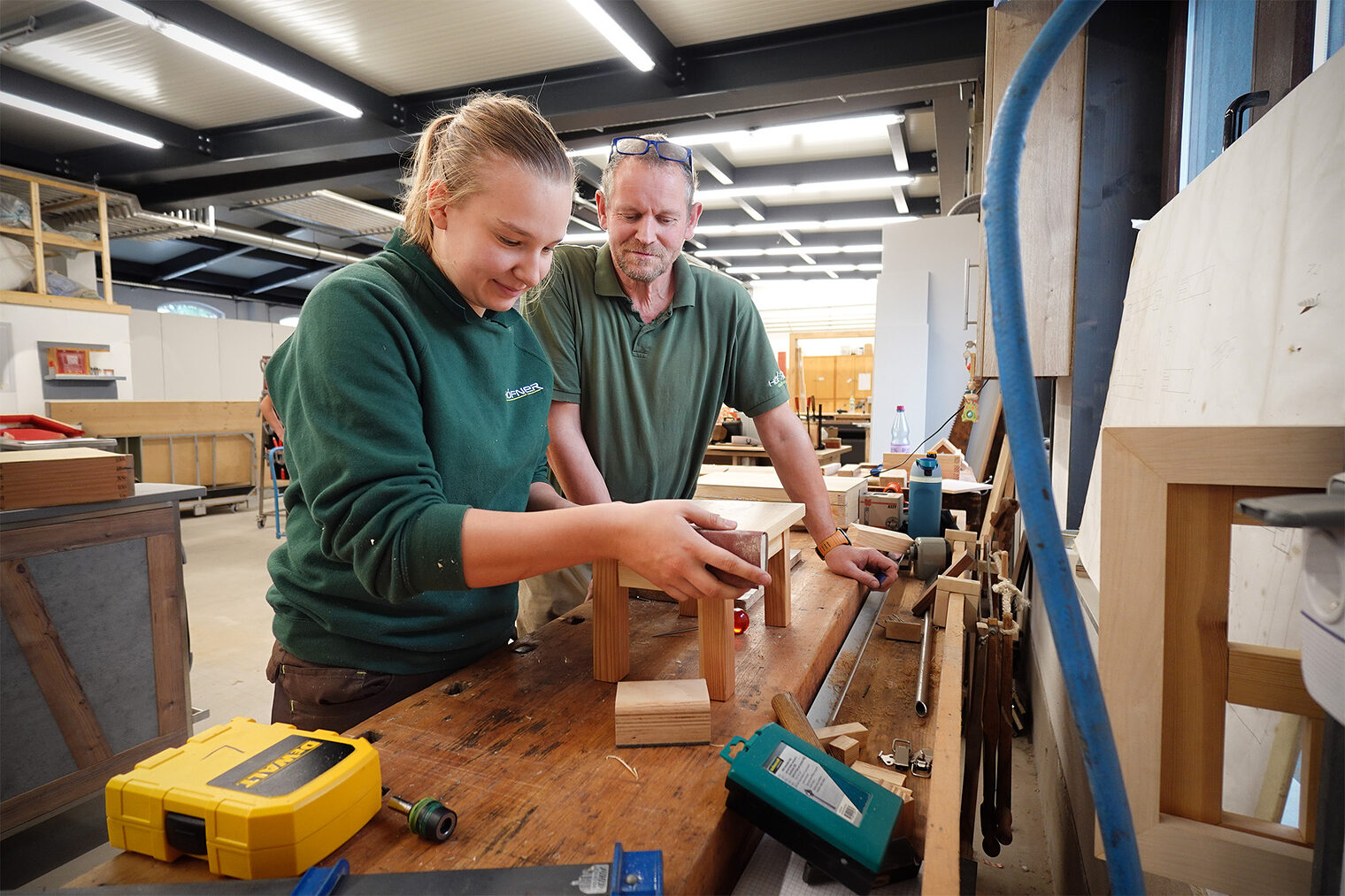 Für die Geschwister Höfner ist die Ausbildung eine Selbstverständlichkeit. „Unser Vater hat immer ausgebildet. Das wollten wir uns bewahren. Es gehört einfach zu unserer Firmenphilosophie“, betont Susann Höfner. Heiko Höfner ergänzt: „Der Beruf des Tischlers ist im Wandel. Was wir früher unter den Fertigkeiten eines Tischlers verstanden haben, darüber liegen wir heute weit hinaus. Nichtsdestotrotz ist es uns wichtig, dass unsere Lehrlinge die Grundlagen des Tischlerhandwerks beherrschen. Deshalb starten alle zu Beginn ihrer Ausbildung mit dem Bau einer Fußbank. Diese Tradition vermittelt nicht nur Fachwissen, sondern auch den Stolz, etwas Eigenes geschaffen zu haben.“