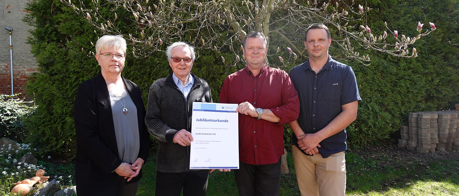 Mit Stolz feiert die Große Dachdecker UG aus Gößnitz ihr 95-jähriges Bestehen. Seit der Gründung steht der Familienbetrieb für fachliche Qualität, handwerkliches Können und gelebte Tradition – mittlerweile in der vierten Generation prägt die Dachdecker Familie mit ihrer Handwerksarbeit die Region.