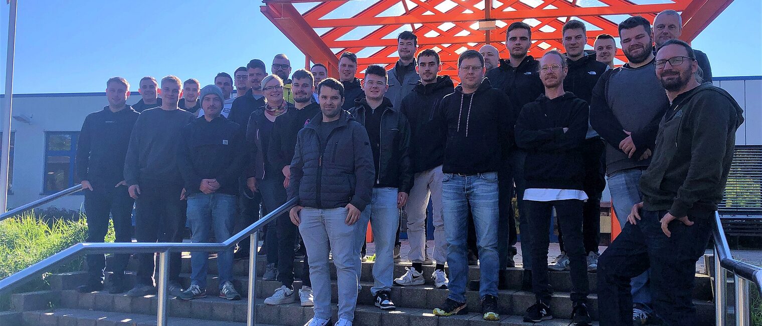 Titelbild: Die 25 Lehrgangsteilnehmer, die in der Bildungsstätte Zeulenroda bis Dezember die Meisterschulbank drücken, gemeinsam mit der Lehrgangsleiterin Vera Müller.