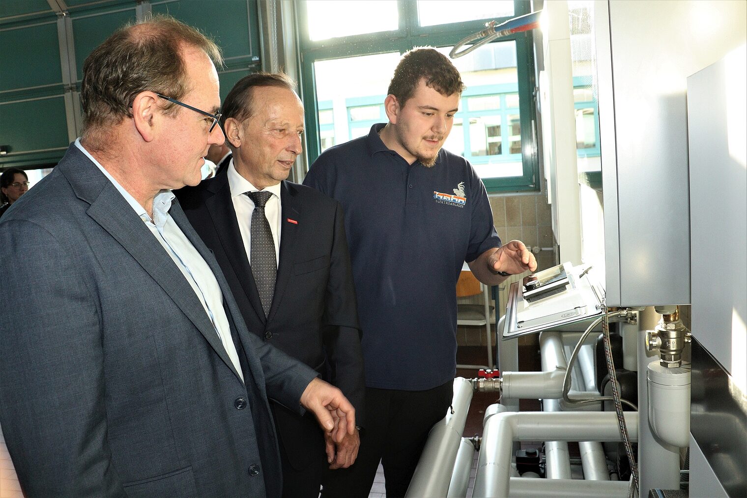 Thüringens Umweltminister Tilo Kummer besuchte die Bildungsstätte der Handwerkskammer für Ostthüringen in Gera-Aga, übergab offziell ein neues Wärmepumpenkabinett seiner Bestimmung und informierte sich über die Schulungsangebote im Bereich der Energie- und Wärmewende. Im Mittelpunkt stand die Frage, wie Azubis, Gesellen und Meister für die Technologien der Zukunft qualifiziert werden.News