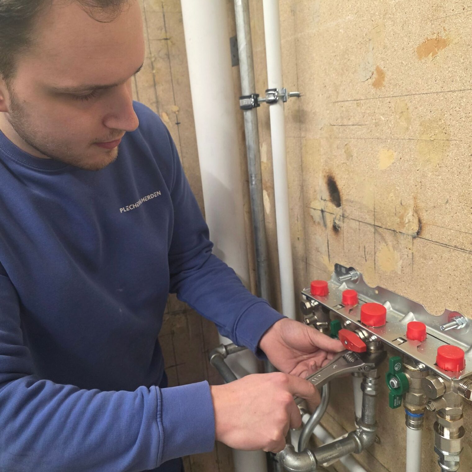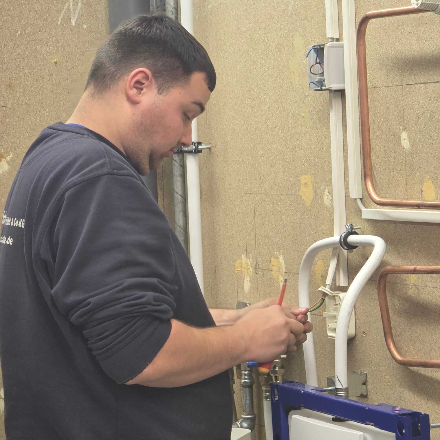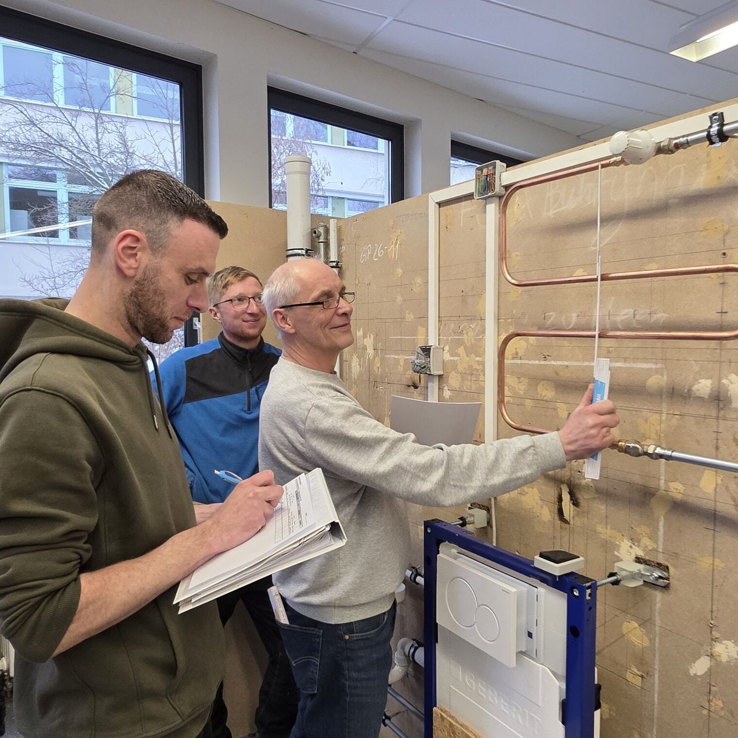 Die Prüfungen verlangten den Nachwuchskräften höchste Präzision und handwerkliches Können ab. Auf dem Prüfstand standen unter anderem die fachgerechte Montage sämtlicher Bauteile einer Installationswand nach Plan sowie die optisch ansprechende Verlegung von Leitungen. Ein weiterer Schwerpunkt war die Vorbereitung von Gasleitungen für Belastungs- und Dichtheitsprüfungen – ein Arbeitsschritt, der besondere Sorgfalt erfordert.